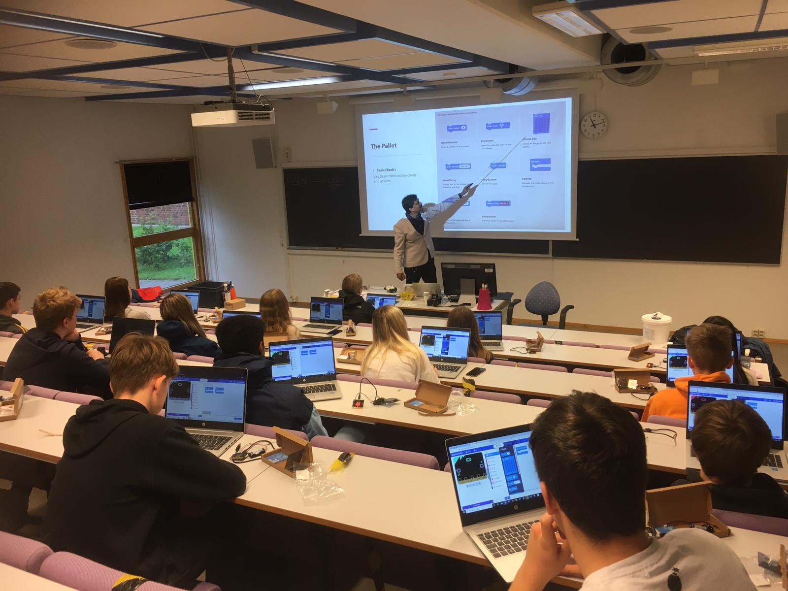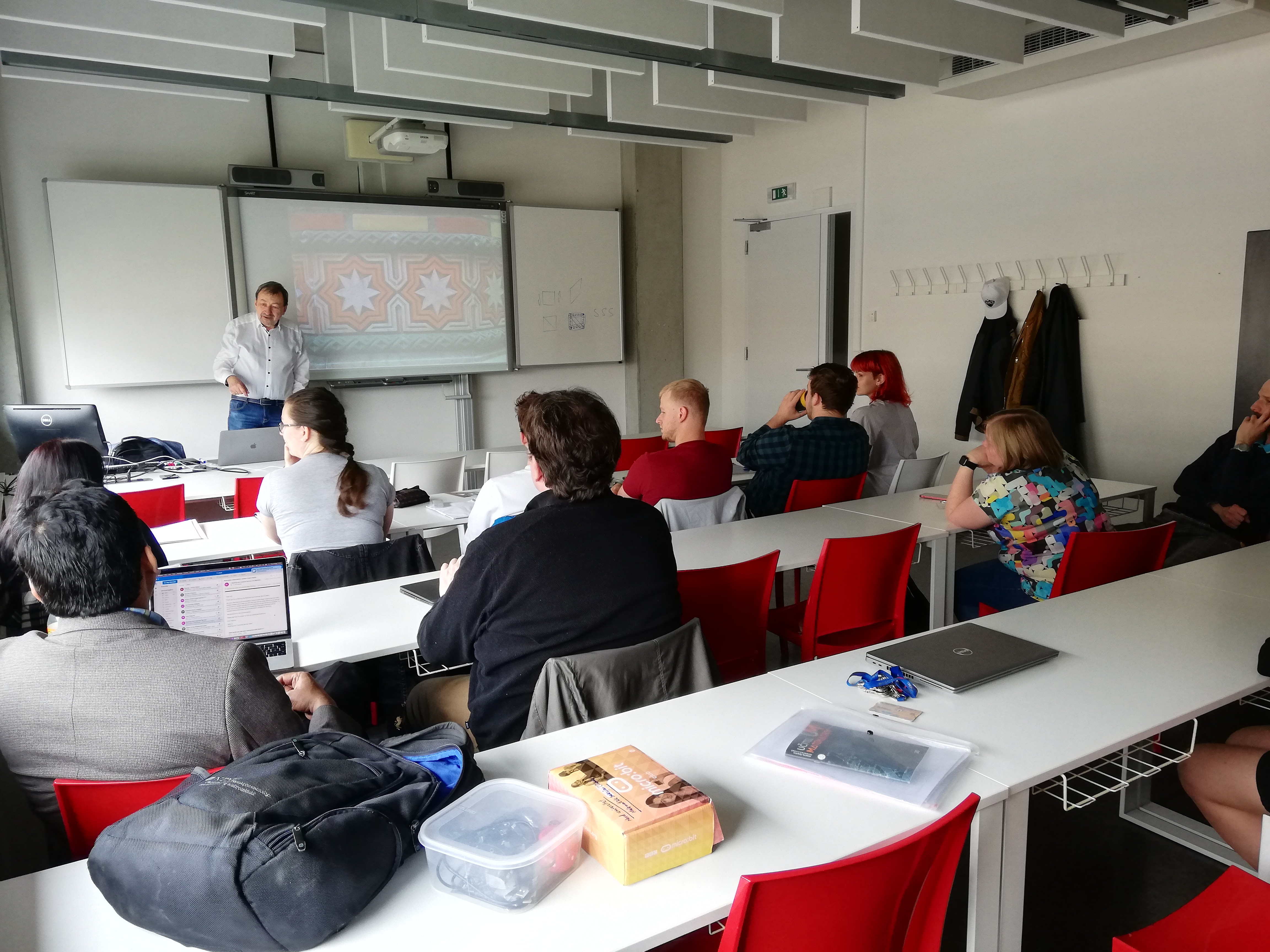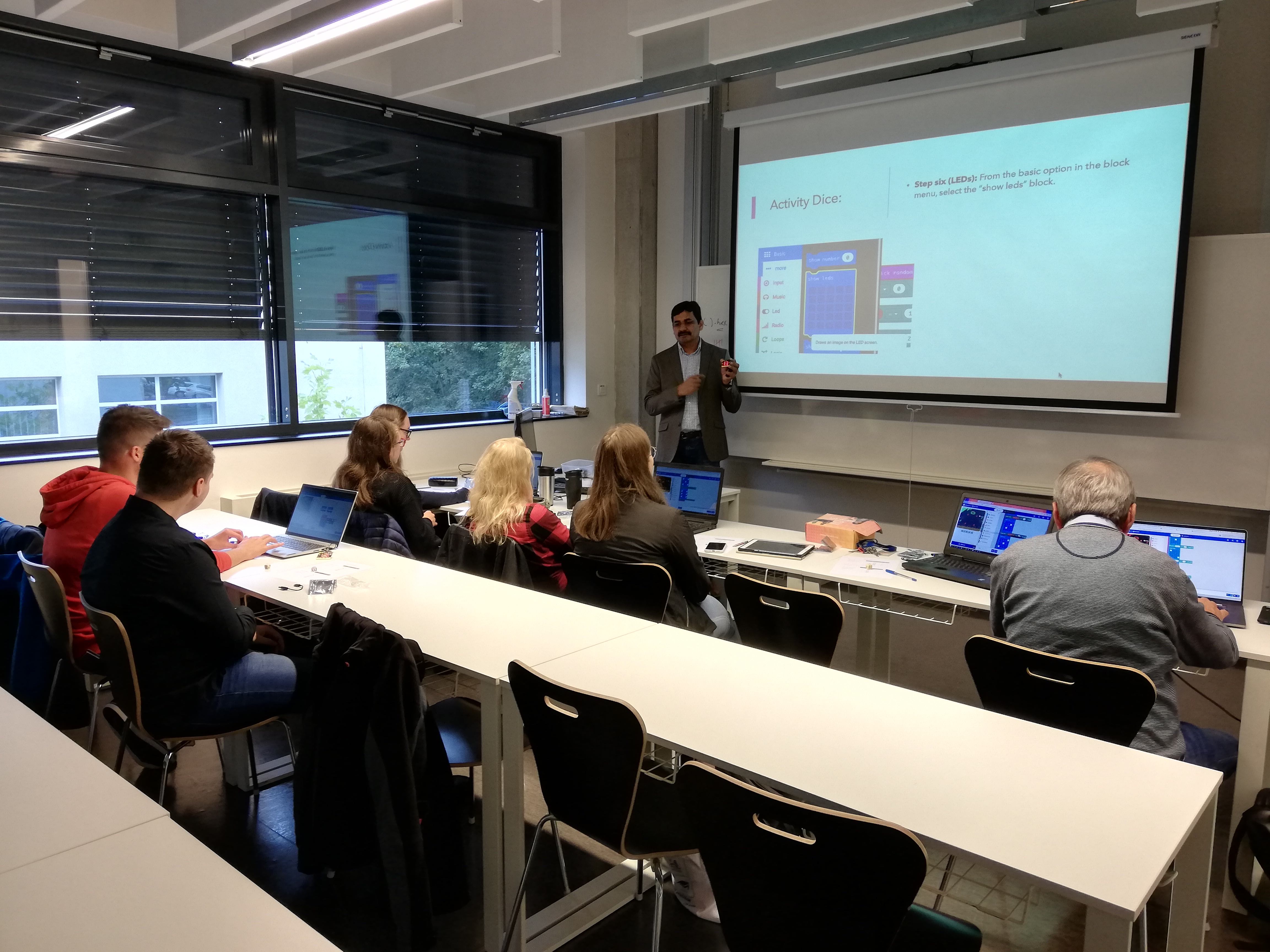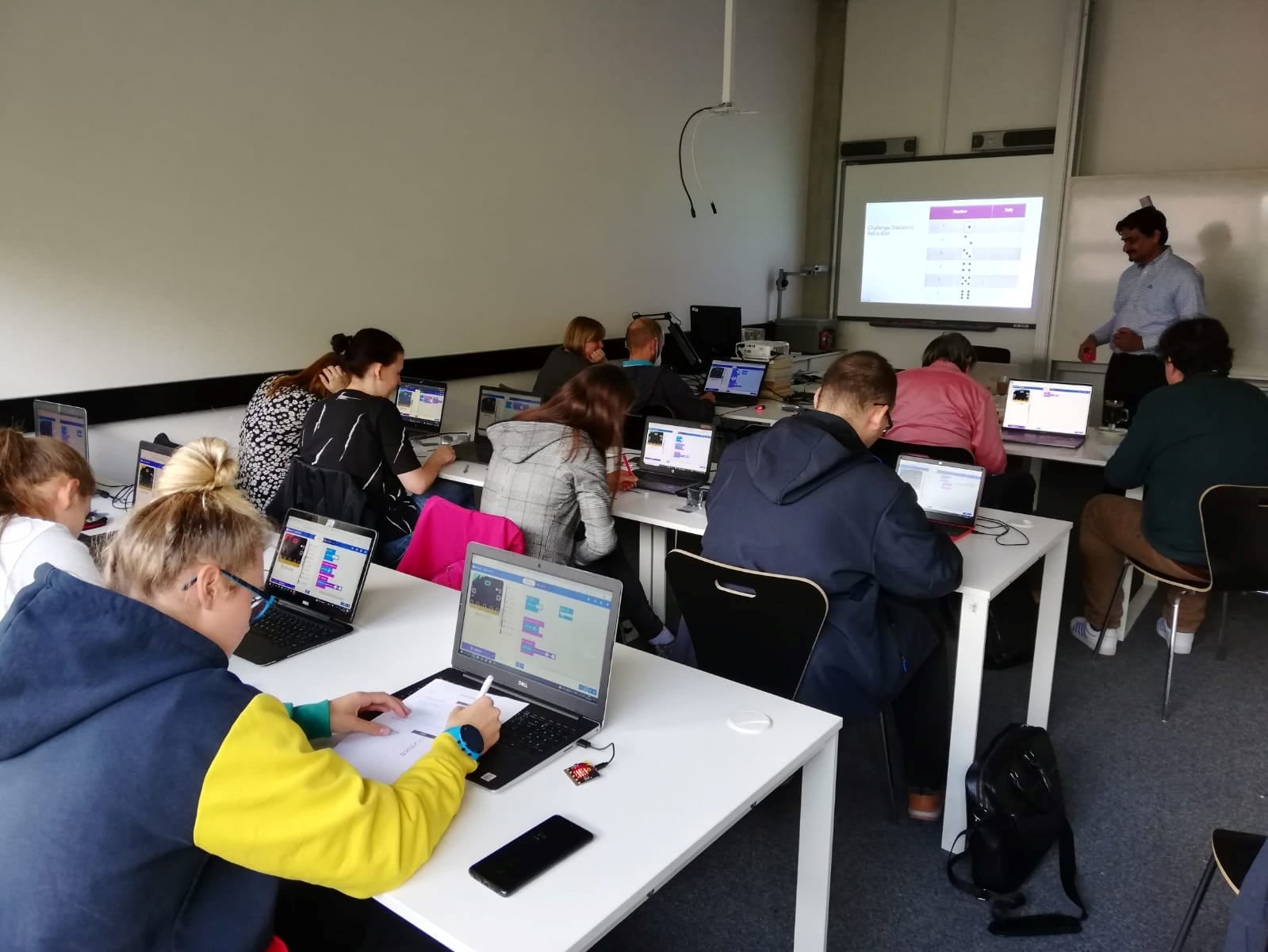 Asif Mustaq lektoroval workshop s názvem „Block-based programming/coding in schools”, kterého se účastnili kromě členů projektového týmu z KMD FP TUL a z NORD University také studenti 3. ročníku bakalářského cyklu studijního oboru Matematika se zaměřením na vzdělávání. Účastníci workshopu sestavovali jednoduché programy v online prostředí makecode.microbit.org a správnost svých sestavených programů ověřili na mikropočítačích s názvem micro:bit, které jim byli lektorem na dobu konání workshopu zapůjčeny. Programování micro:bitů pomocí blokově orientovaného jazyka studenty velmi zaujalo. Někteří studenti se dokonce později dotazovali na možné další pokračování workshopu.