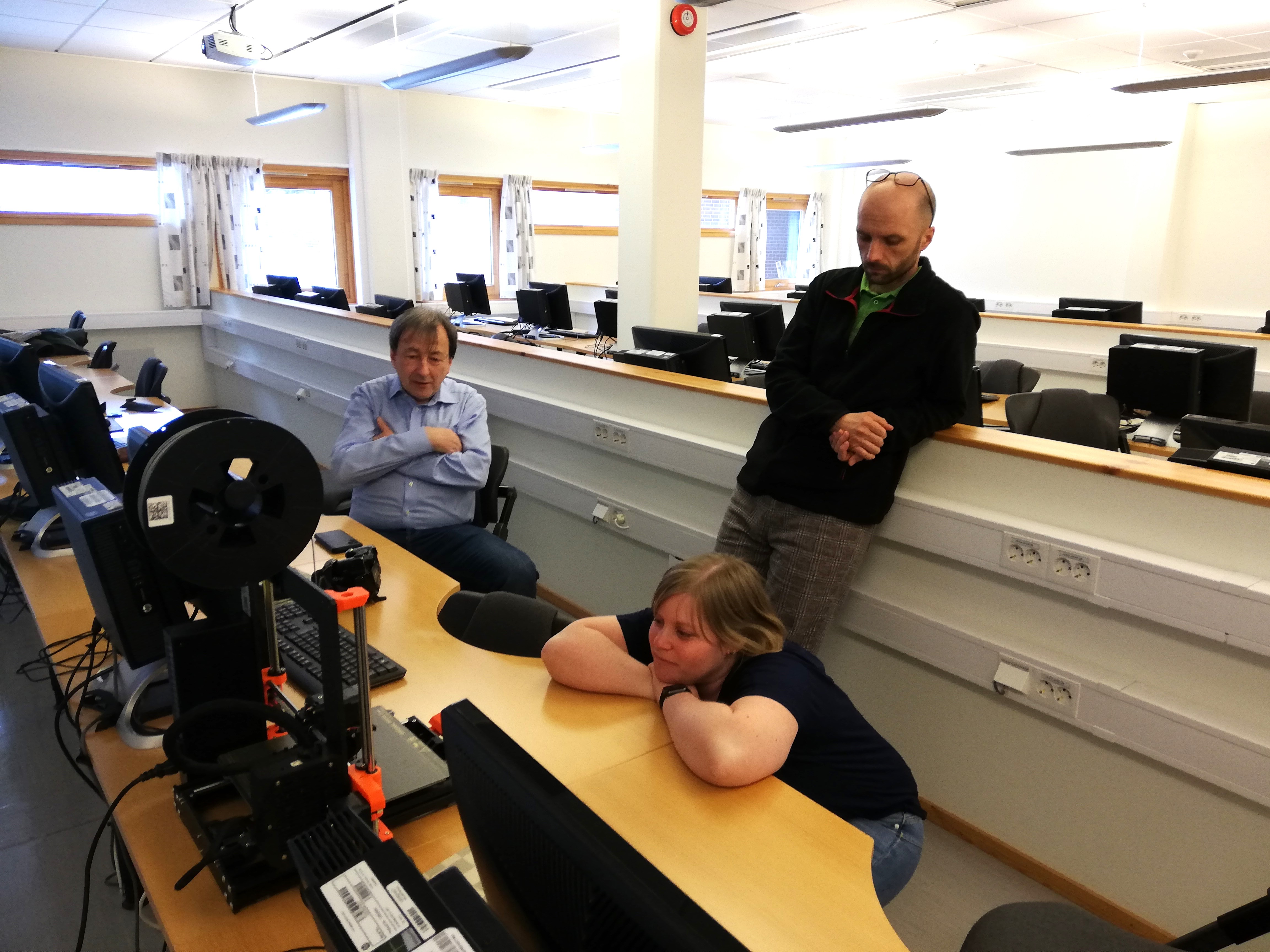 Daniela Bímová a Jiří Břehovský seznámili kolegy z NORD University s modelováním v softwaru Rhinoceros, s nastavením virtuálního modelu pro 3D tisk a se samotným 3D tiskem reálného modelu.