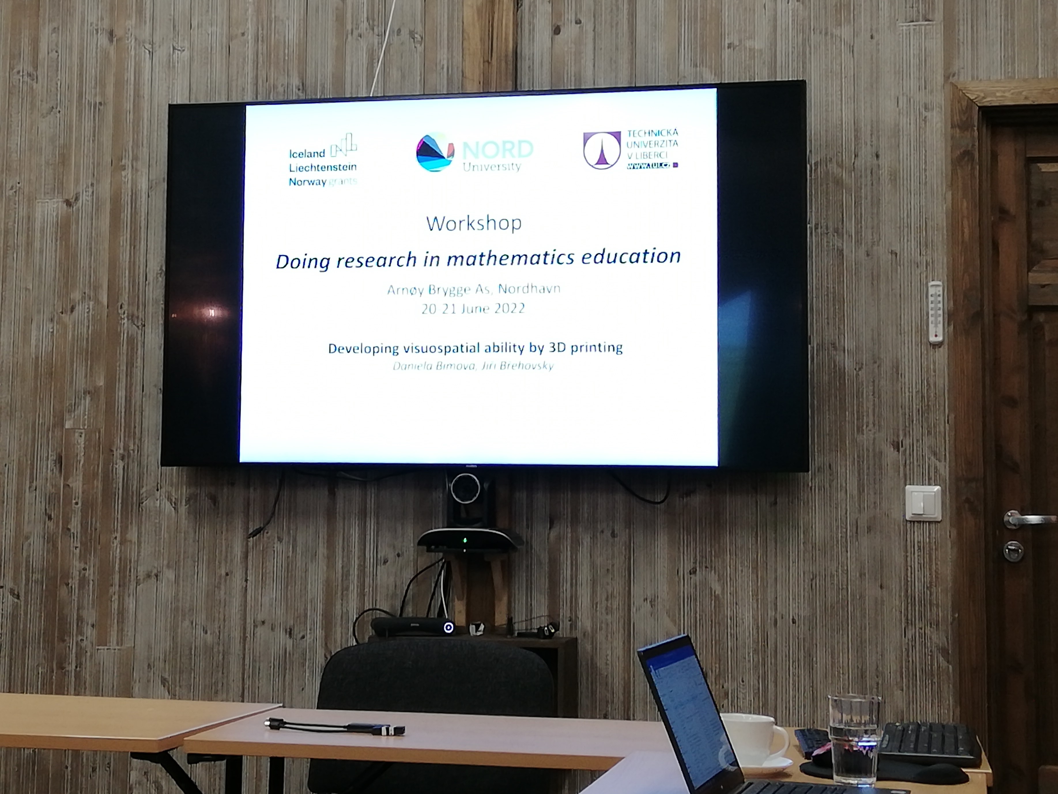 Daniela Bímová představila na workshopu s pracovním názvem "Doing research in mathematics education" určeném nejen pro doktorandy katedry Mathematics Teaching and Learning z NORD University, ale také pro členy řešitelského týmu projektu iTEM výzkumné otázky zaměřené na 3D tisk, modelování dynamických appletů v GeoGebře a jejich spojitosti s rozvíjením vizuálně-prostorových schopností žáků, které jsou zkoumány v rámci řešení projektu iTEM. Výzkumné otázky byly posléze v rámci skupiny účastníků workshopu diskutovány, někteří účastníci workshopu navrhli vhodná rozšíření výzkumných otázek pro navazující práci.
