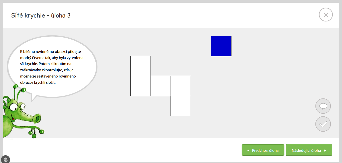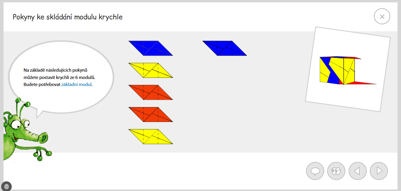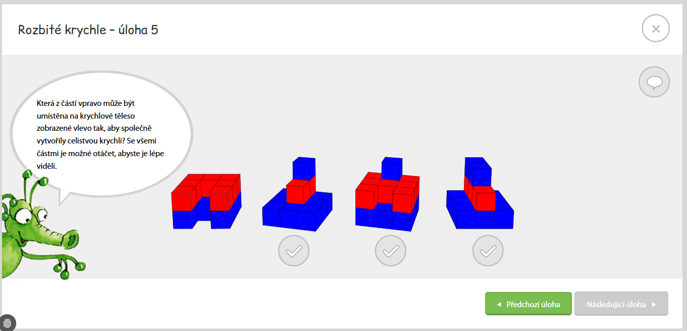 Návrh úlohy k rozšíření úloh Mathematikusu - kartičky geometrického pexesa, jehož cílem je najít dva různé pohledy na jedno a téže krychlové těleso