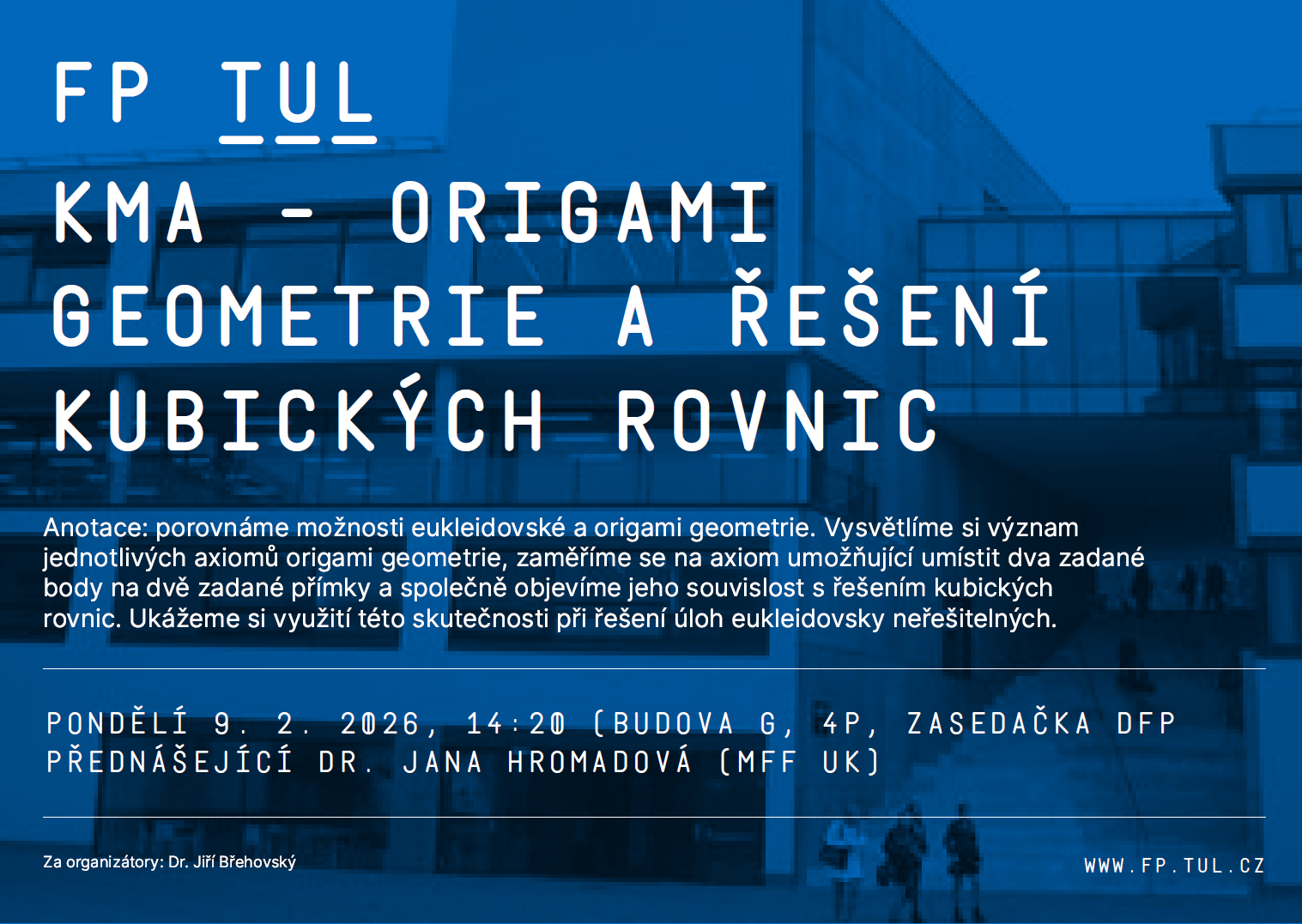 Harmonogram semináře Matematické problémy nematematiků, společného semináře s MFF UK a FJFI ČVUT na letní semestr 2025/26: